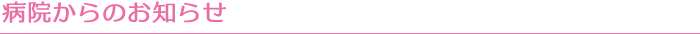 | インターネットの病院検索サイトに掲載されている情報について、当院では 一切関知しておりません。また誤った情報が掲載されていることがあります。 インターネットを見て診察に来る際は、事前に病院へお問い合わせください。 |